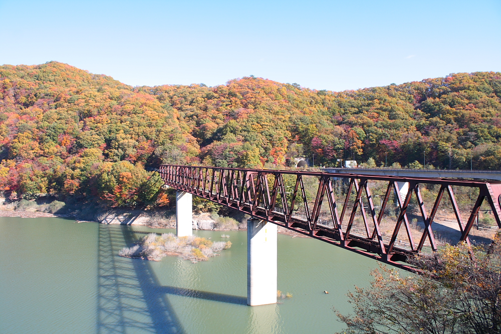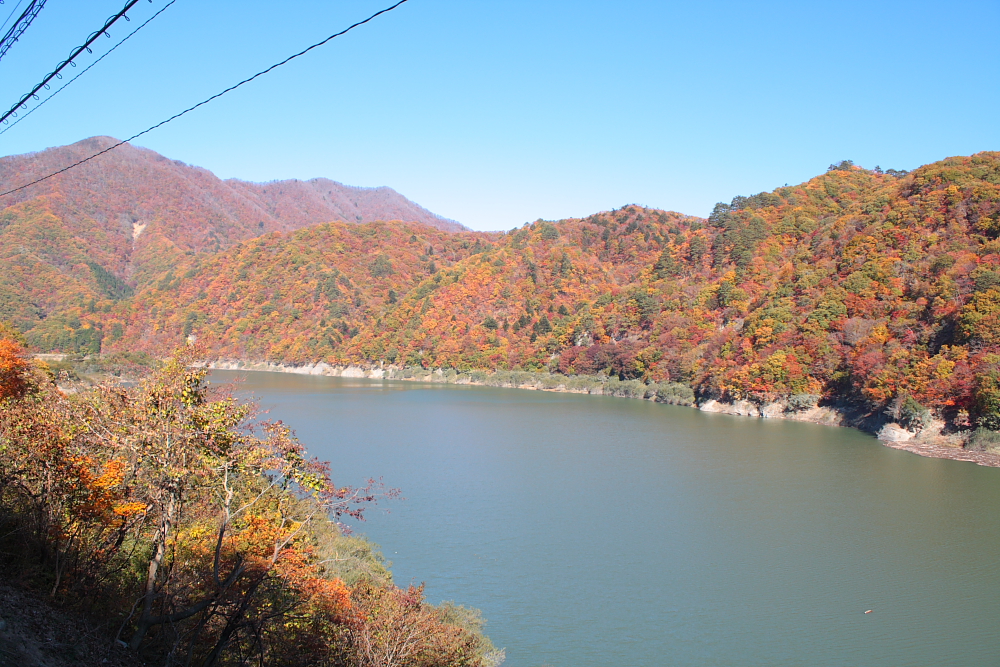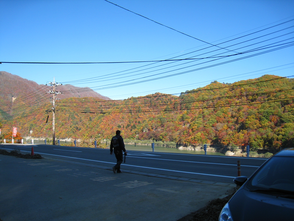 山麓の奥只見湖まで到着しました。